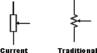 2) ตัวต้านทานที่เปลี่ยนค่าได้ ( Variable Value Resistor ) เป็นตัวต้านทานที่เมื่อหมุนแกนของตัวต้านทาน แล้วค่าความต้านทานจะเปลี่ยนแปลงไป นิยมใช้ในการควบคุมค่าความต่างศักย์ไฟฟ้า ( Voltage ) ในวงจรอิเล็กทรอนิกส์ เช่น การเพิ่ม – ลดเสียงในวิทย์หรือโทรทัศน์ เป็นต้น สัญลักษณ์ที่ใช้ในวงจร ดังนี้
